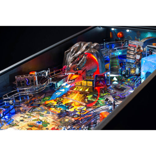 Enjoy mysterious and exciting features by navigating through hidden passageways, experience an electromagnet-powered gelatinous cube that freezes the pinball, and explore dynamic dungeon levels that are accessed through a disappearing playfield trap door. Other features include Fizmo’s store that allows players to acquire unique items, a treasure chest that unleashes mimic monsters, and more secrets to uncover.